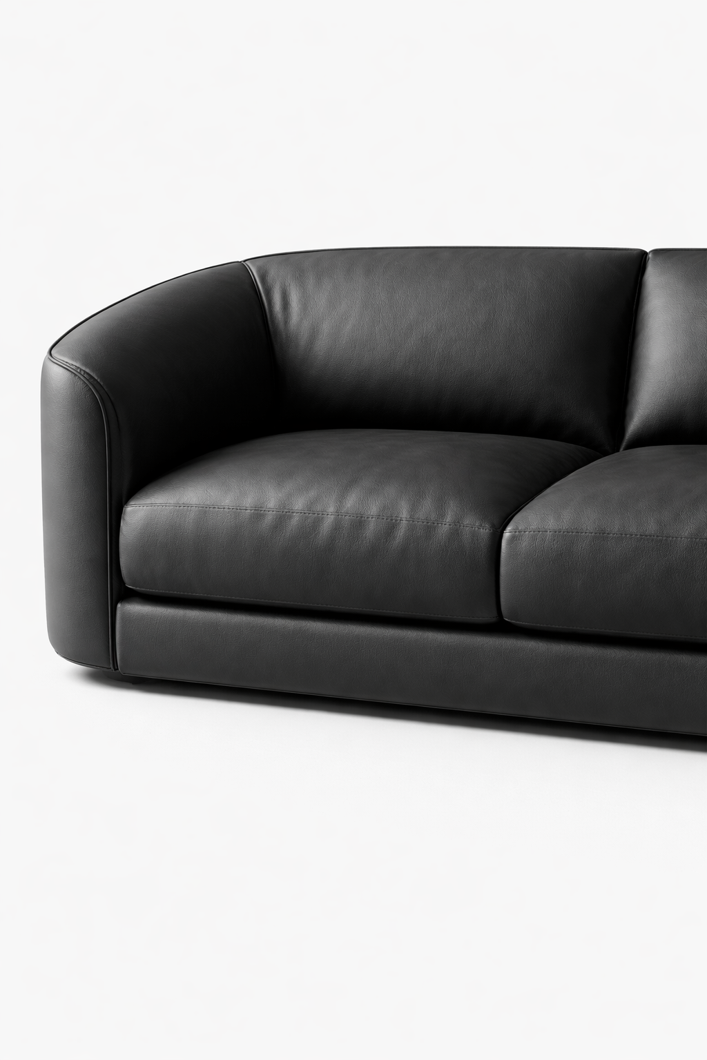 The Atelier Curve is a sculptural three-seat sofa designed for modern luxury interiors — wrapped in matte black full-grain leather with a seamless, flowing silhouette.